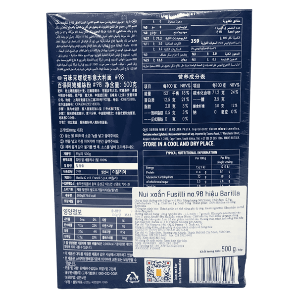Nui Xoắn Barilla 500Gr Số 98 - hộp
